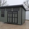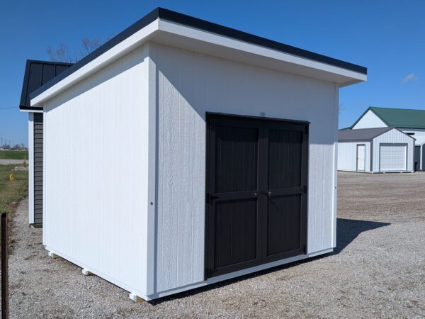 This stylish studio shed is decked out with large overhangs and bold black trimmings! Built with high-quality materials, the tall walls provide a ton of vertical space for hanging tools and keeping equipment organized. Made with superior craftsmanship and topped with a lifetime warranty metal roof, it’s a practical and dependable addition to any backyard!
