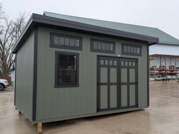 This stylish studio shed is decked out with large overhangs and bold black trimmings! Built with high-quality materials, the tall walls provide a ton of vertical space for hanging tools and keeping equipment organized. Inside, the four large windows flood the space with natural light. Made with superior craftsmanship and topped with a lifetime warranty metal roof, it’s a practical and dependable addition to any backyard!