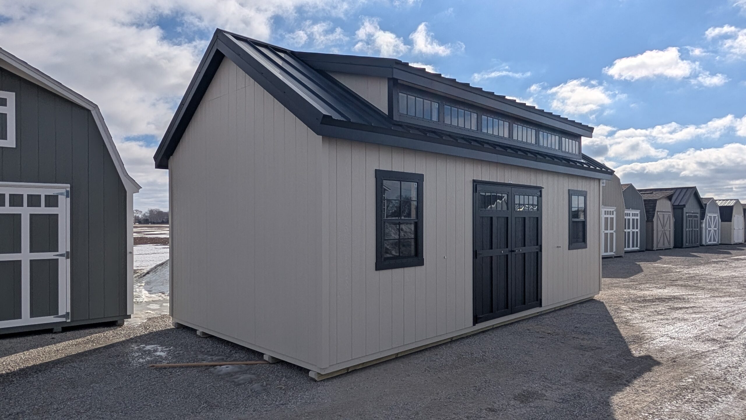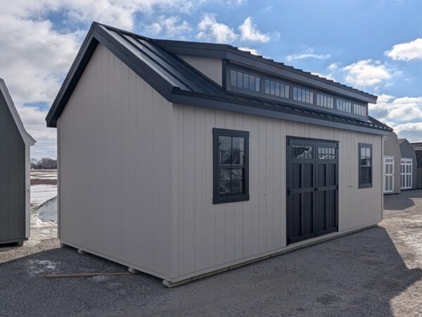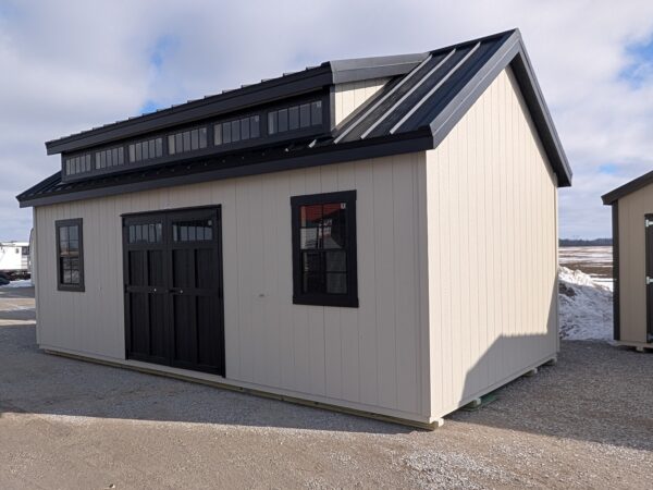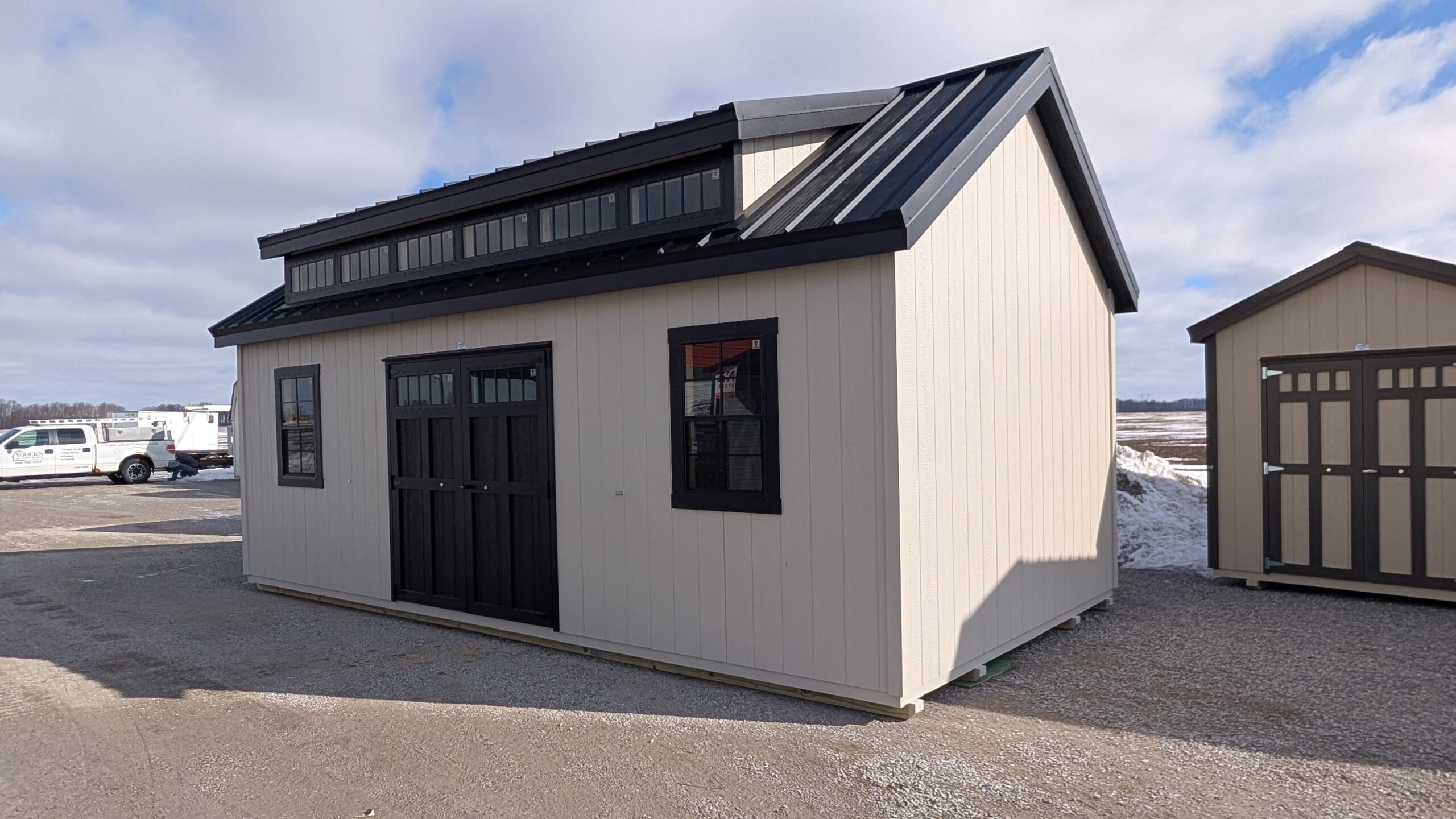 This premium A-Frame features sleek black trim accents and a massive 16′ dormer that floods the interior with natural light! It boasts a cathedral ceiling and spacious 6′ storage lofts on both ends for maximum organization! Pictures simply can’t do justice to its impressive size and scale! This Premium shed is the combination of both functionality and bold style that stands out!
