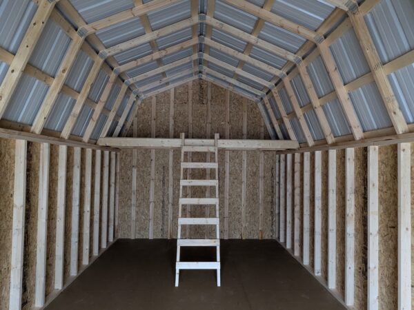 The barn style really lets you take advantage of that high ceiling with a 4′ storage loft in the rear and 4′ loft in the front, featuring 5′ of headroom up in the attic! The 30-year shingle roof provides excellent durability and protection, while the full ridge vent helps keep the interior cool. This shed includes a wooden ladder, which easily allows access to either storage loft!