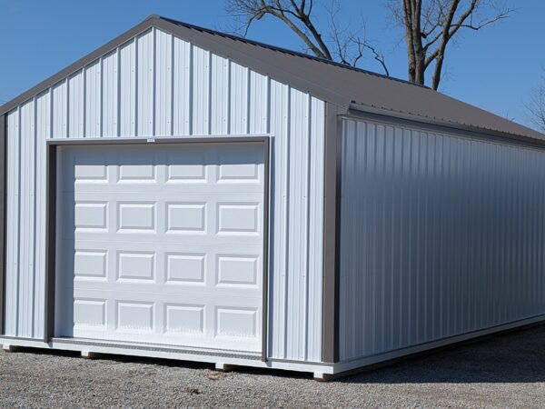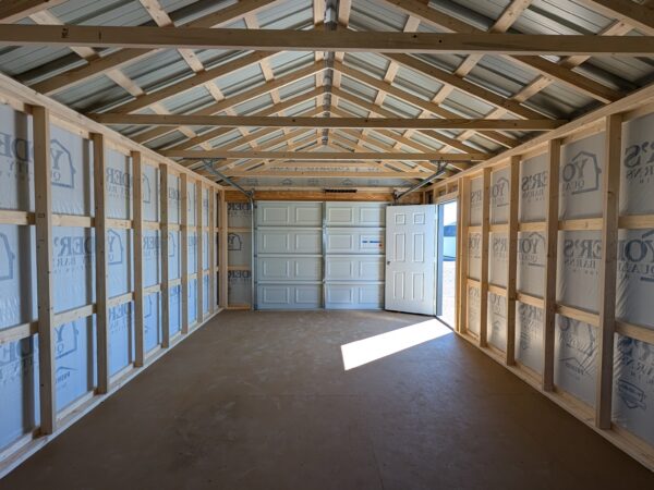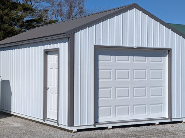 This 14×24 is one of our biggest pre-fab sizes that we can deliver to you today, and is is ready to be filled with your toys, truck, or tools! This features a huge 9×7′ garage door, an insulated entry door, a large window in the side, and a spacious workbench spanning the width of the garage. Covered with the perfect maintenance-free option, this entire garage is wrapped in lifetime warranty steel!