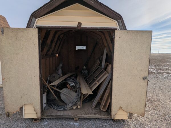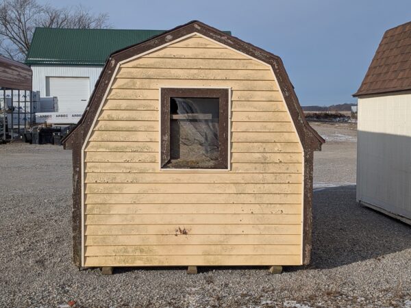 Recently traded in, we have this 8×12 barn for sale. If you’re looking for a project, this is the perfect fixer-upper, as the interior framing and flooring are in great shape. We would suggest replacing the siding, the doors, and the shingle roof.