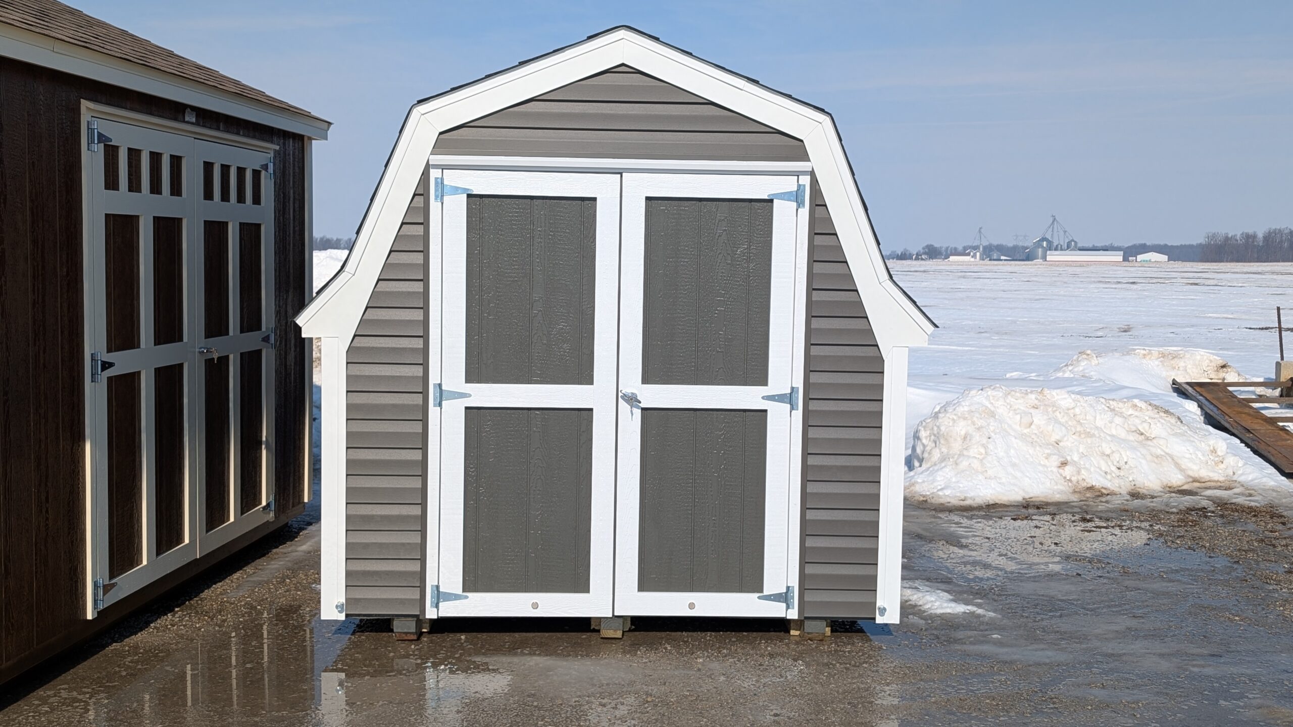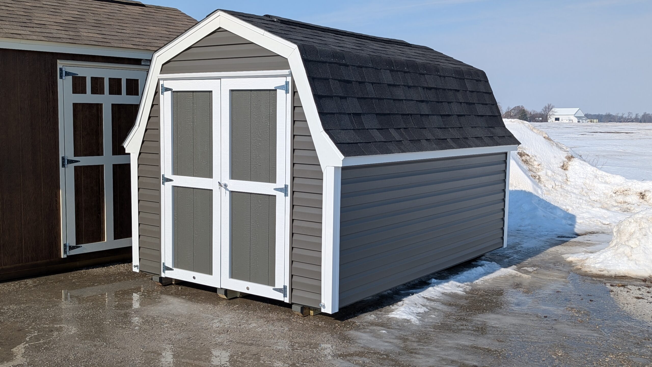 Recently traded in, we have this 8×12 barn for sale. We gave the exterior a complete remodel with a brand new 30-year shingle roof, new vinyl siding, and a brand new set of double doors. Located at our main display lot in Bluffton. Free delivery within 30 miles.